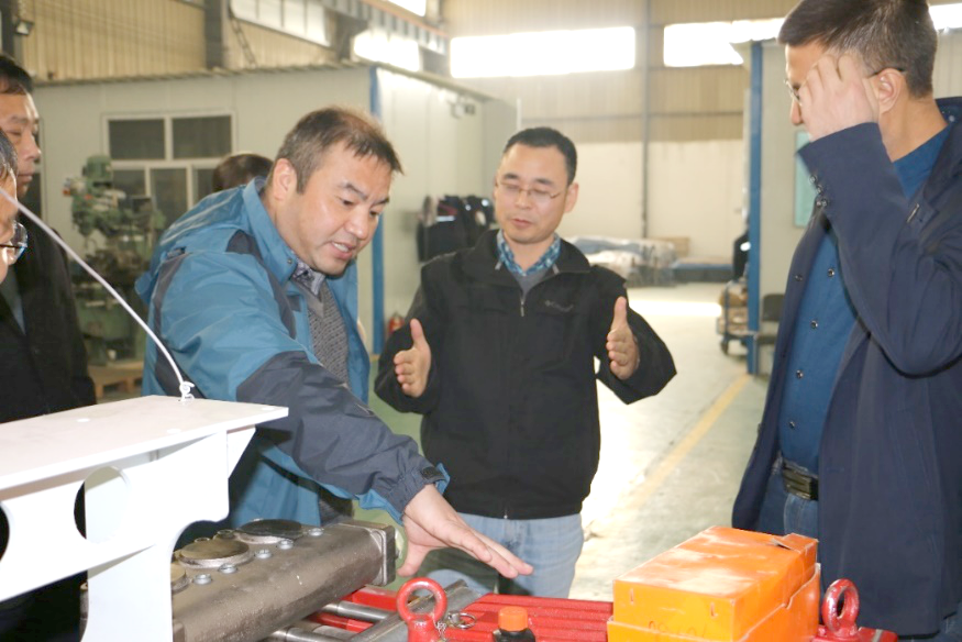 陕西省太合智能钻探有限公司董事长王义红对bevictor伟德官网领导和专家的到来表示热烈欢迎。他首先详细介绍了企业的发展历程、科研成果以及发展愿景。他表示太合智能公司将不忘初心,砥砺前行。嗣后,专家们参观了目前国内扭矩最大的ZYL-17000D型矿用履带式全液压定向钻机、YSX15矿用有线随钻测量装置、YSX16矿用无线随钻测量系统、随钻测量钻具以及金刚石复合片钻头等系列高新产品,还就细节技术问题驻足讨论。