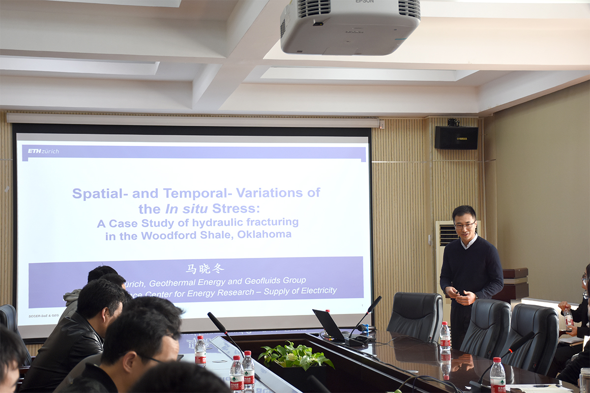 3月26日上午9点,在315会议室马晓冬、黎伟两位青年学者分别做了题目为《地应力在时空上的变化和黏性应力松弛:以美国Woodford页岩为例》、《尾矿材料力学特性试验研究》的学术报告,公司领导与部分师生参加了论坛。报告会由副经理王亮清主持。