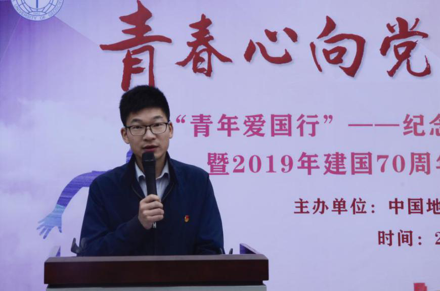 黄蕾向同学们讲授“纪念五四运动100周年”主题微团课。她讲到,同学们作为新时代的青年人,既是追梦人,也是圆梦人;既有际遇和机缘,也有矛盾和困惑;既生逢其时,也重任在肩。她希望同学们勇担时代重任,牢记总书记“八字真经”,做到爱国、励志、求真、力行,努力成为“品德高尚、基础厚实、专业精深、知行合一”的一流地大学子。
