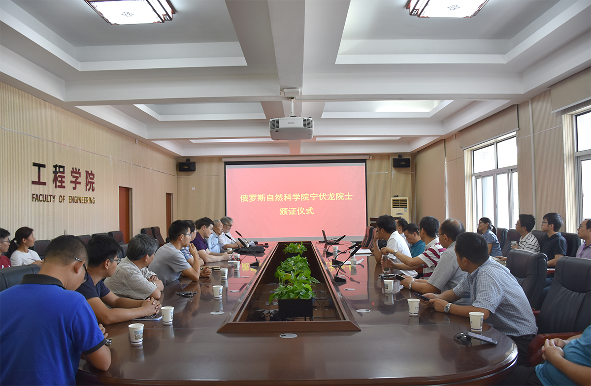 bevictor伟德官网党委书记陈飞主持本次仪式。首先,经理焦玉勇教授对宁伏龙教授的主要学术成就做了简单介绍。之后,契霍特金教授向大家介绍了俄罗斯自然科学院基本情况以及外籍院士的遴选过程,并代表俄罗斯自然科公司为宁伏龙教授颁发院士荣誉证明、院士证和徽章。随后,宁伏龙教授发表荣获俄罗斯外籍院士感言,表示今后会更加致力于本职工作,积极推动与俄罗斯等国家高校、研究院所的国际合作,为公司“双一流”建设作出更多贡献。最后,王林清副书记发表讲话,对宁伏龙教授获此荣誉表示祝贺,并对宁伏龙教授及bevictor伟德官网今后的工作提出了更高的要求。