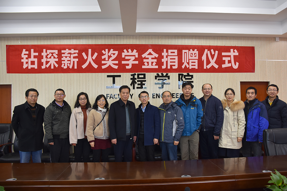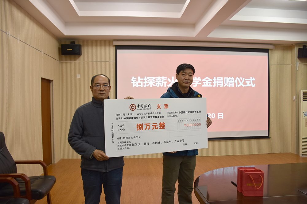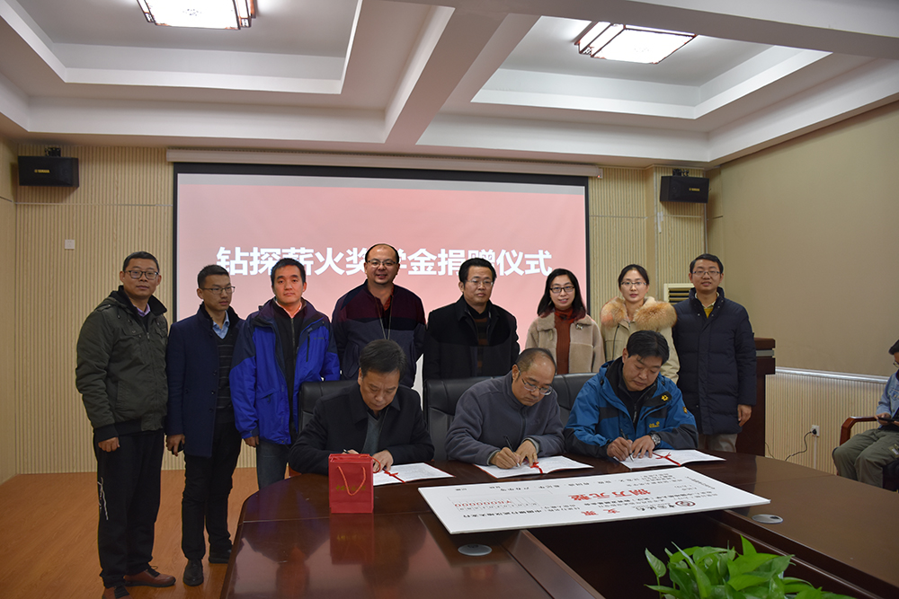 12月20日,bevictor伟德官网“钻探薪火奖学金捐赠仪式”在工程楼315会议室举行。湖北省城市地质工程院勘查部主任汪发文、副主任徐俊,员工工作与教育基金管理处副处长吕占峰,bevictor伟德官网党委书记陈飞,副书记江广长,勘察与基础工程系教授段隆臣、蔡记华、卢春华及2017级部分员工代表参加捐赠仪式。