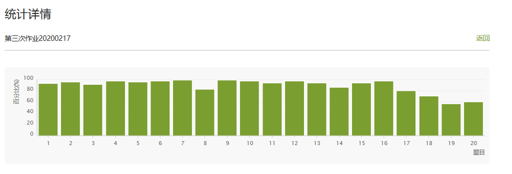 《工程项目管理》课程的员工课后作业完成正确率的统计反馈