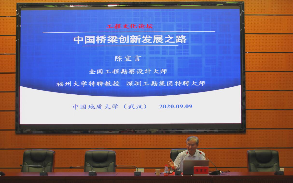 随后陈宜言教授作客工程文化论坛,为与会师生作了题为《中国桥梁创新发展之路》的精彩的学术报告。
