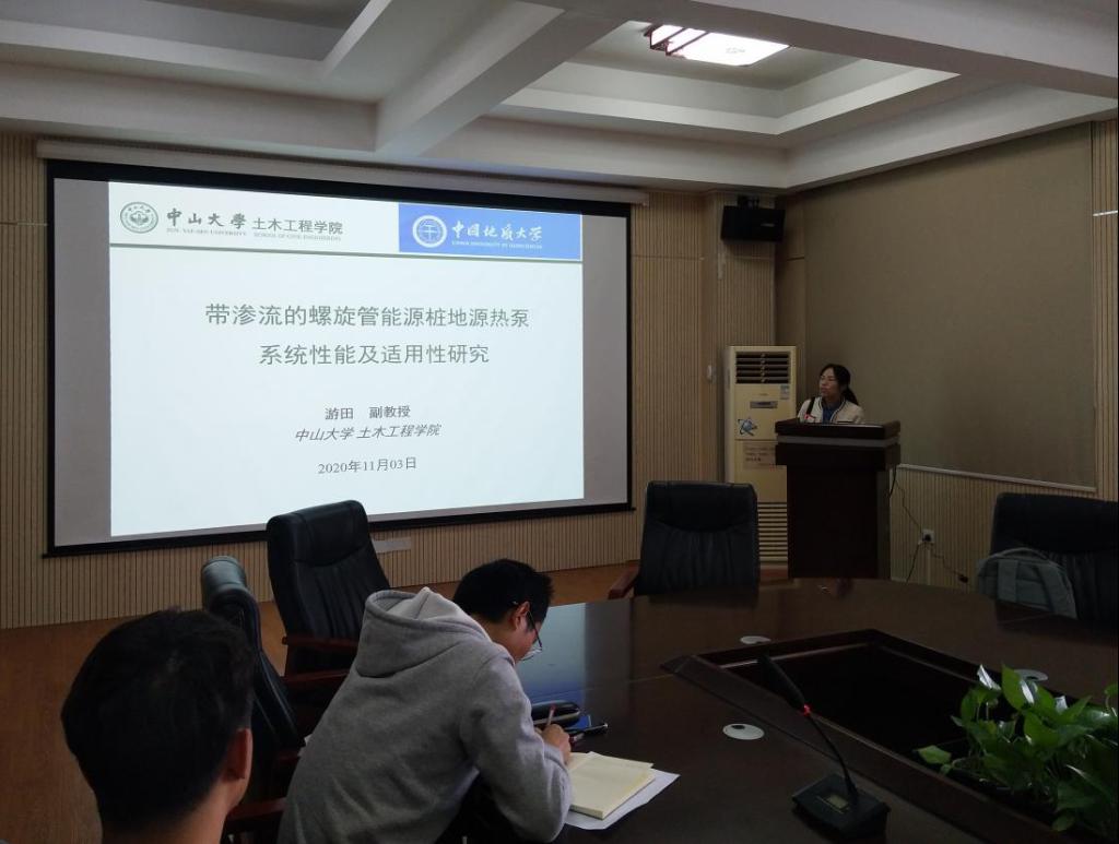 2020年11月3日下午,应bevictor伟德官网骆进副教授邀请,中山大学游田副教授作客工程文化论坛,在315会议室作了题为“带渗流的螺旋管能源桩地源热泵系统性能及其适用性研究”的学术报告。骆进副教授主持了此次论坛活动,公司50余名师生聆听了学术报告。