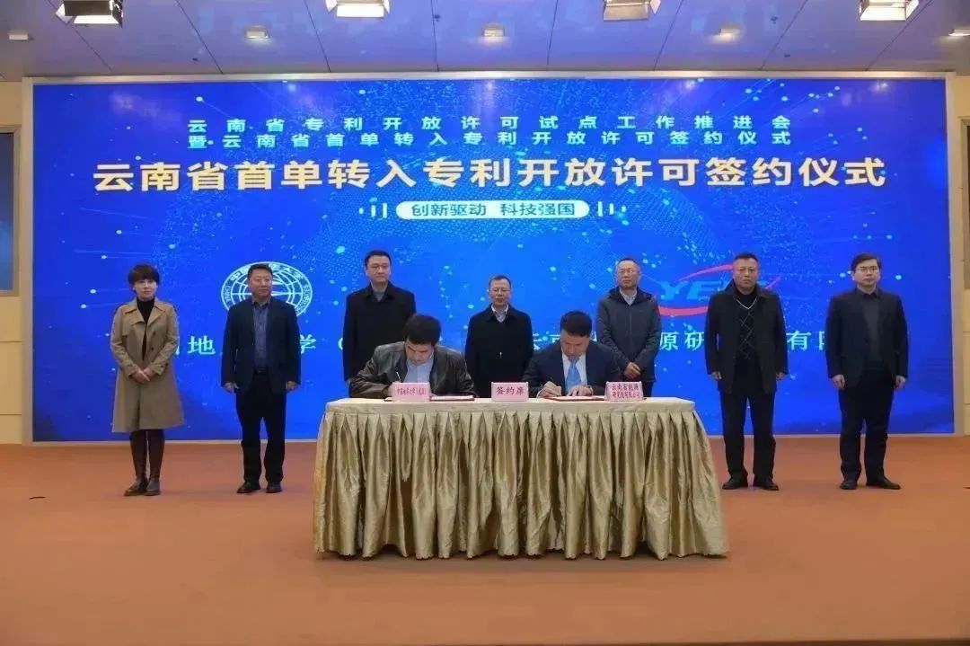 (通讯员 蔡记华 杨现禹 黄静)2月28日下午,在云南省市场监督管理局(知识产权局)、昆明市市场监督管理局(知识产权局)的指导下,昆明高新技术产业开发区管理委员会在昆明高新区西区火炬大厦隆重举办了“云南省开放许可试点工作推进会暨云南省首单转入专利开放许可签约仪式”活动。会上,云南省能源研究院有限公司与韦德官方网站(武汉)就基于公司蔡记华教授、杨现禹副教授团队成果“纳米颗粒流体的页岩纳米孔隙封堵实验装置及方法”“基于多参数的离散元纳米颗粒封堵页岩孔隙数值模拟方法”“一种稳定页岩的水基钻井液”3项发明专利签署了专利开放许可协议,这是云南省签约的首单转入专利开放许可。