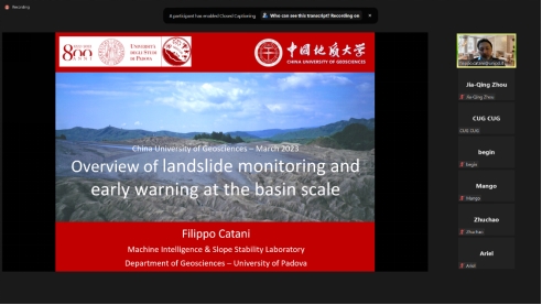 (通讯员:陈文强 叶阳320日至22日,应公司唐辉明教授和李长冬教授的邀请,意大利帕多瓦大学Filippo Catani教授应邀作客2023年度第1-3重大地质灾害预测与防控学科111创新引智基地系列学术讲座。系列短课采用Zoom在线会议形式,由叶阳特任教授主持,李长冬教授、周佳庆特任教授、张峰特任教授、邹宗兴副研究员等共计40余名师生参加了本次在线短课
