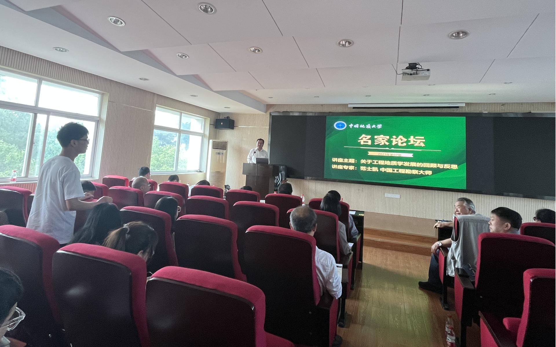 在交流互动环节,师生踊跃提问,范士凯勘察大师作了详细解答。他勉励师生要重视实践教学,扎实做好基础研究工作。唐辉明教授为范士凯勘察大师颁发名家论坛纪念海报。王亮清副经理作了会议总结。