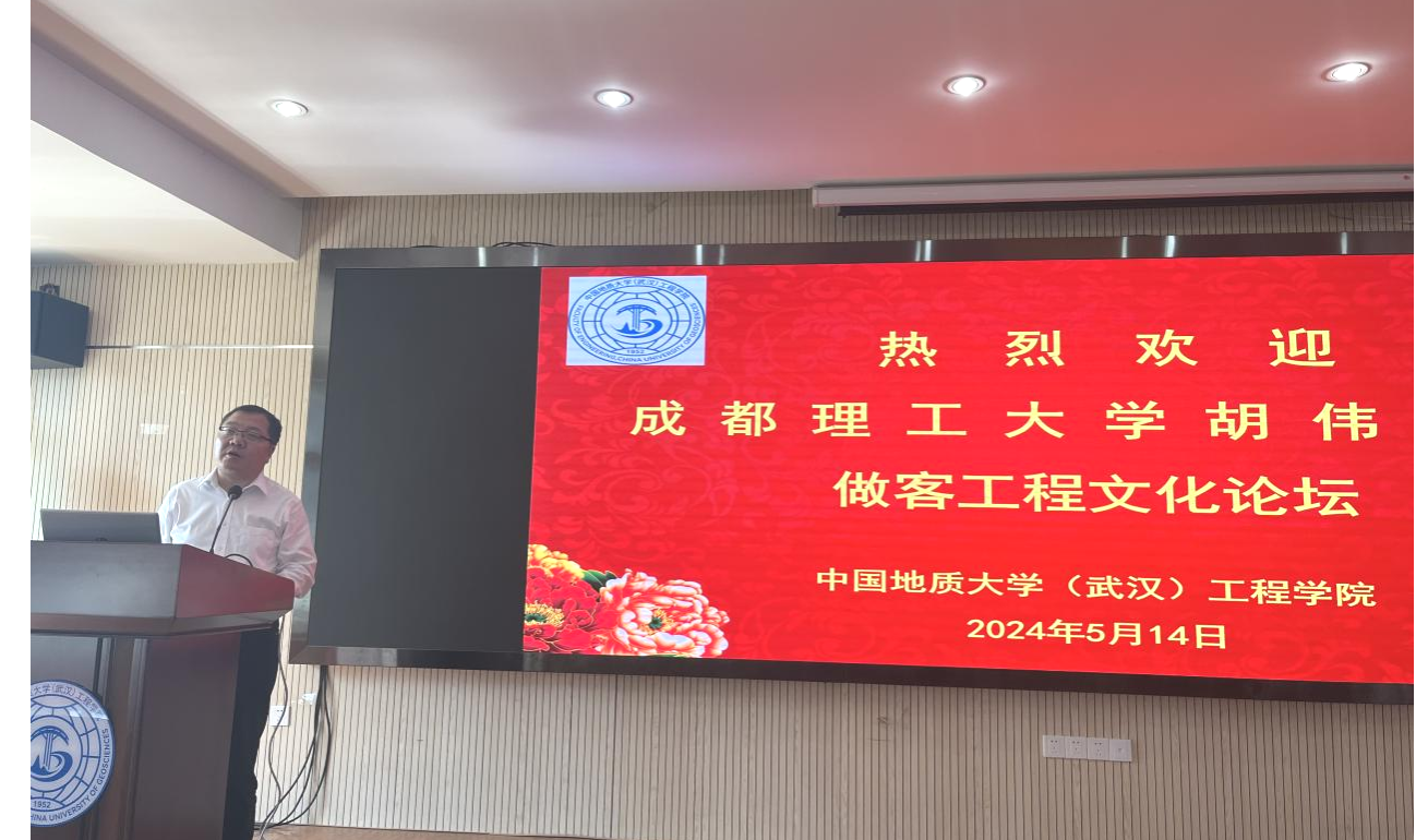(通讯员 刘智琪 黄静)2024年5月14日下午,应bevictor伟德官网唐辉明教授的邀请,成都理工大学胡伟教授来校访问并做客工程文化论坛,bevictor伟德官网副经理王亮清教授主持论坛,100余名师生聆听了讲座。