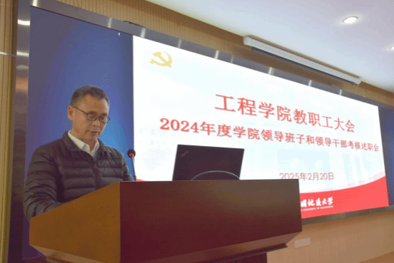 经理王亮清代表公司领导班子做2024年度述职述廉报告。公司领导班子成员李红丽、王亮清、窦斌、倪晓阳、章广成、高晓东分别进行个人述职述廉。与会师生对公司领导班子及领导干部进行民主测评。