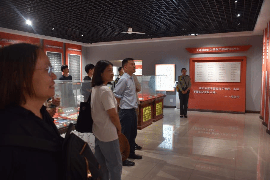 全体师生党员在模拟“延安中央礼堂”,共同观看由大别山革命历史陈列馆老馆长萧本初讲授的“长征精神”专题党课视频。最后,在讲解员的带领下,参观大别山革命历史文化陈列馆,并在陈列广场重温了入党誓词。