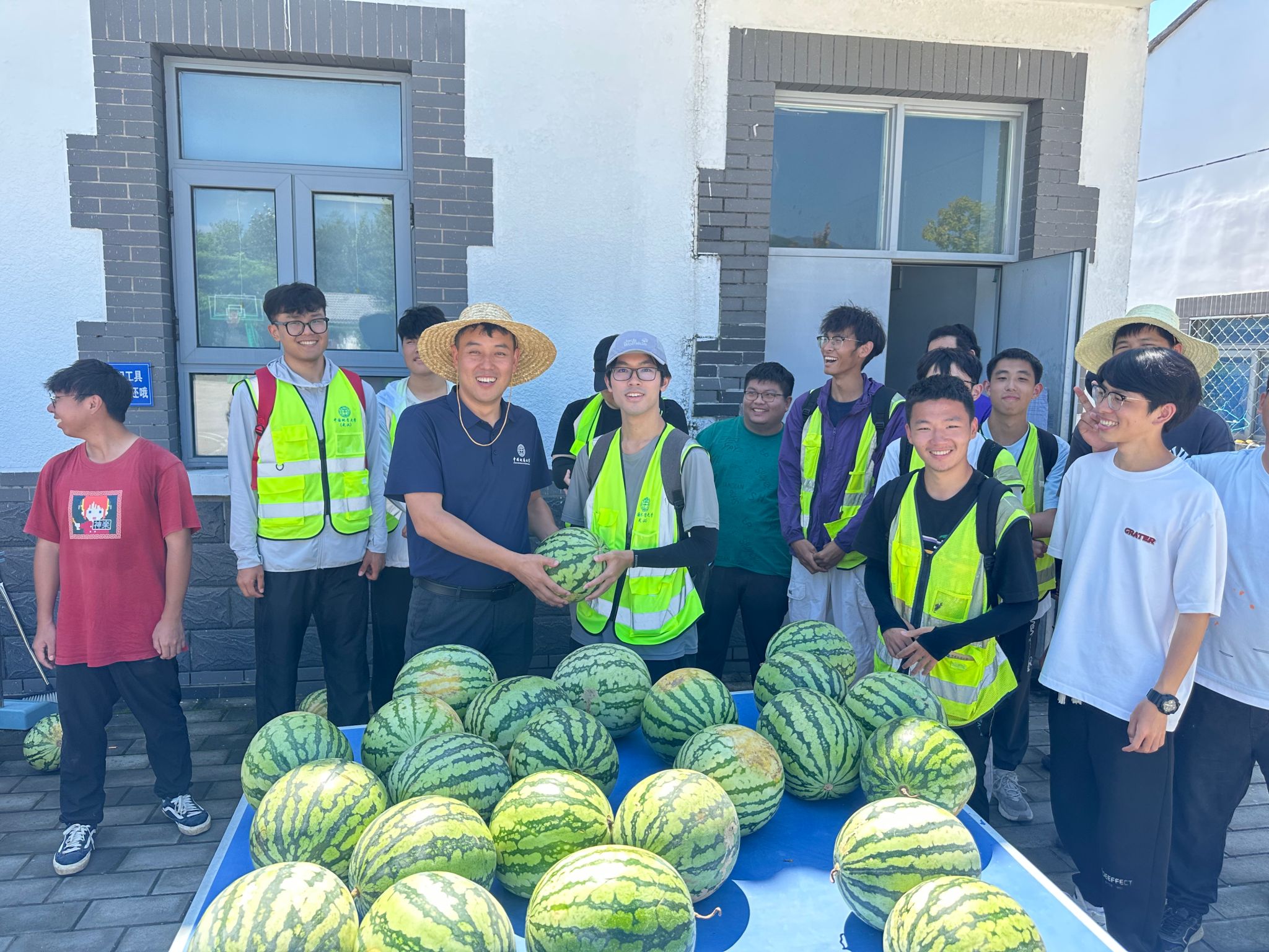 8月10日下午,王亮清一行前往教师公寓、员工宿舍看望慰问实习师生。在员工宿舍前,公司领导为实习师生发放防暑降温物资,详细了解实习期间生活保障情况。王亮清在交流中鼓励同学们:“实习既是专业能力的淬炼场,也是意志品质的试金石,希望大家珍惜实习机会,在实习中收获成长。”高晓东提醒道:“近期持续高温,要科学调整野外实习时间,切实做好防暑降温措施。”