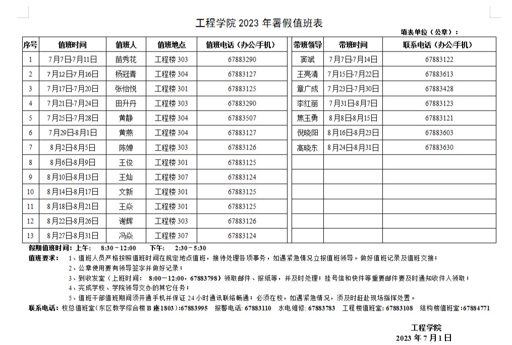 2023年暑期值班表