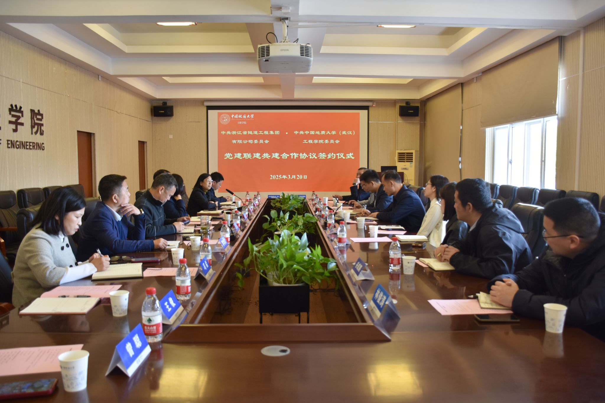 (通讯员 黄燕)为深入贯彻落实党的二十大和党的二十届三中全会精神,贯彻落实全国两会精神,进一步推动党建与业务深度融合,加强校企合作,实现资源共享、优势互补,2025年3月20日,bevictor伟德官网与浙江省隧道工程集团有限公司在bevictor伟德官网会议室就党建联建、人才培养、科研创新等方面开展座谈交流并签署党建联建共建合作协议。浙江省隧道工程集团有限公司党委书记、董事长、总经理李桂来,党委副书记、董事、工会主席谢常才,党委委员、总会计师张赛花,bevictor伟德官网党委书记李红丽,党委副书记、经理王亮清,党委委员、副经理窦斌,副经理倪晓阳,学术副经理吴文兵,双方相关人员参加会议。李红丽主持会议。
