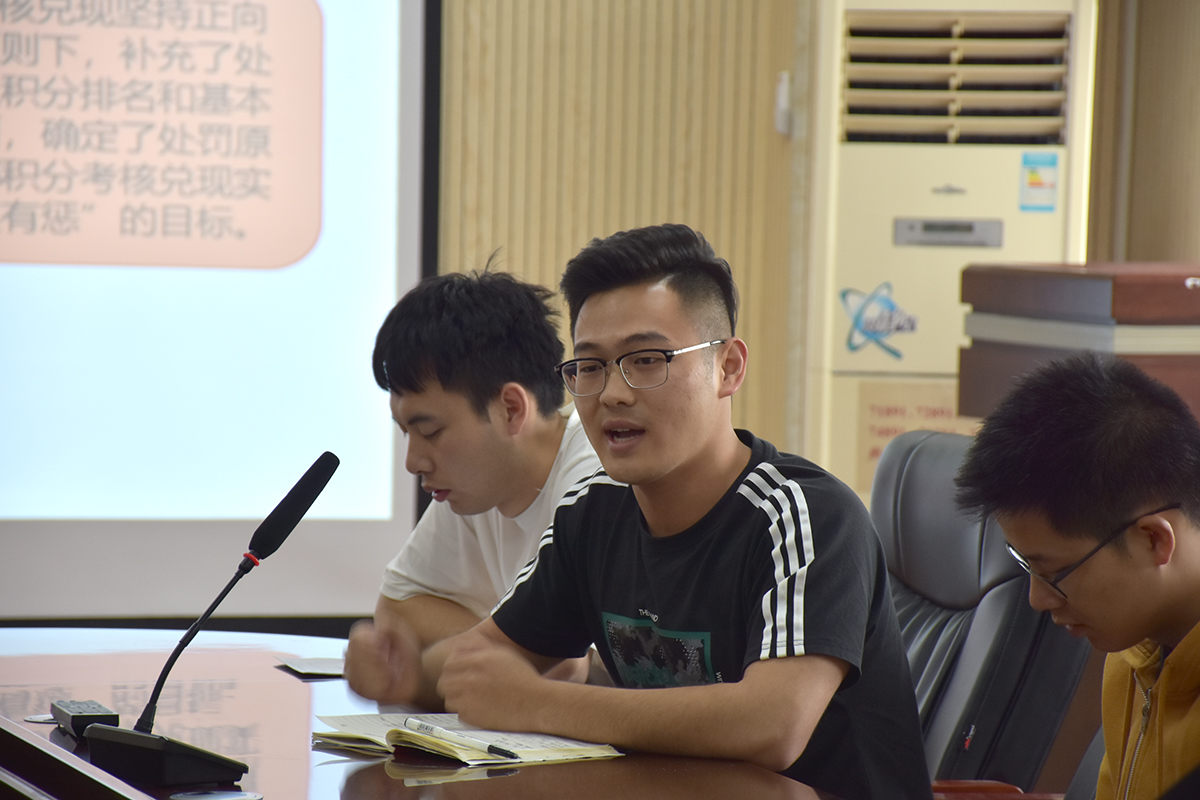 在场同学踊跃发言,与刘月中深入交流。2018级硕士第一党支部书记周浩表示,“四融工作法”在现代企业组织模式下,将党建、生产、安全等工作有效融合,并按照“标准党支部—示范党支部—红旗党支部”的成长道路一步步发展壮大,这对于高校员工党建有很强的借鉴意义。“刘书记谈到,思想引领是支部工作的核心,而人才培养是支部工作的灵魂所在。这启发我们,研究生支部作为思想引领及学术科研的重要阵地,在支部人才培养方面也应投入更多功夫。”周浩说,“我们要认真学习习近平总书记在纪念五四运动100周年大会上重要讲话精神,以支部建设激励党员同志们开拓创新、共同进步,成为新时代有用之才!”