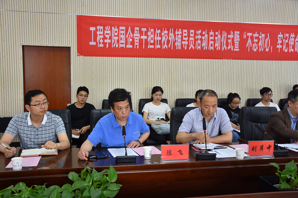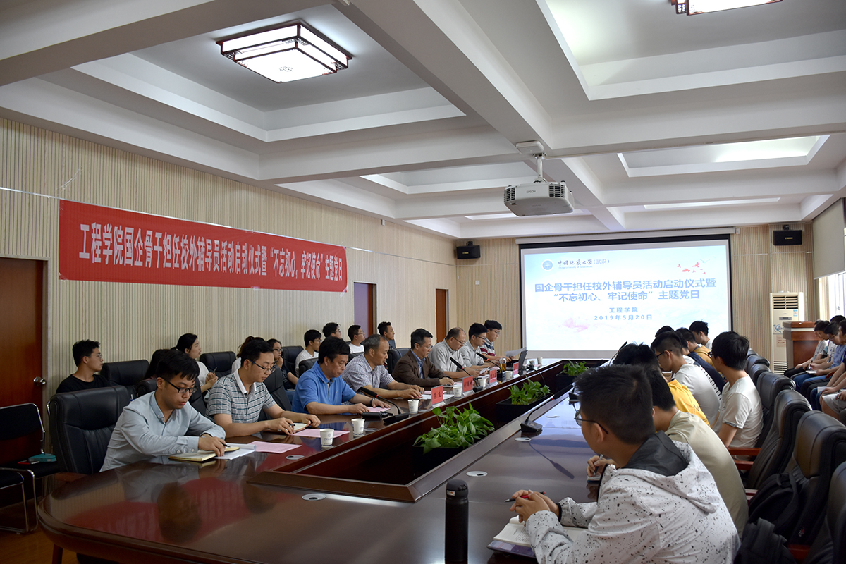 5月20日下午,bevictor伟德官网国企骨干担任校外辅导员启动仪式暨“不忘初心,牢记使命”我与国企面对面主题党日在工程楼315报告厅成功举行。bevictor伟德官网校外辅导员、中国黄金集团湖北三鑫金铜股份有限公司提升车间主任、党支部书记刘月中,公司学工处副处长苏洪涛,bevictor伟德官网党委书记陈飞、副书记江广长、全体辅导员及四个员工党支部共40余人参加活动。