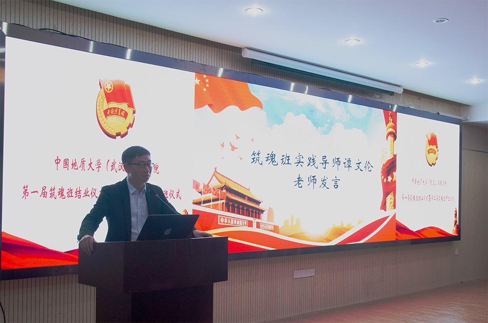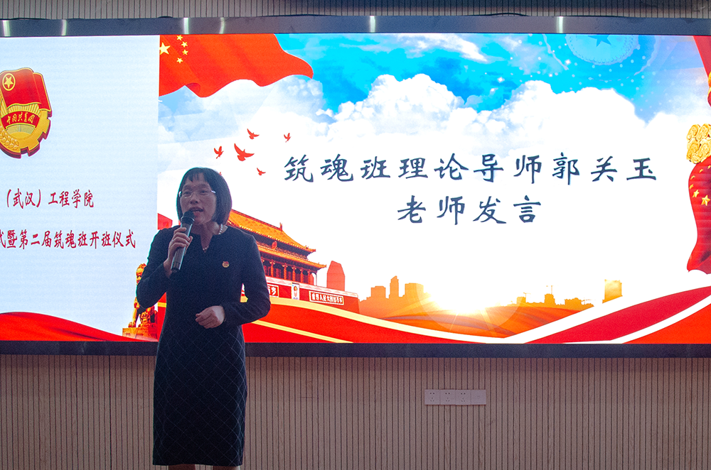 筑魂班理论导师郭关玉发言,她对第一届筑魂班学员的成长感到欣慰并发表了自己的看法:筑魂的涵义就是充实一个人的精神,而我们的精神就是对马克思主义和共产主义的信仰和为人民服务的初心。她寄语工程青年要“学马,言马,信马,行马”,在把握世情,党情,国情中牢记使命,砥砺前行。