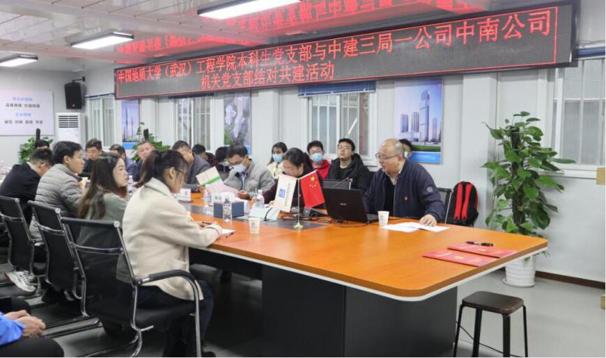 (通讯员:陈启维 李振华)为进一步探索校企合作人才培养模式,引导员工前置行业认知,中建三局一公司中南公司机关党支部与韦德官方网站(武汉)bevictor伟德官网道桥与建筑专业本科生党支部于2020年11月22日在光谷中心项目总部开展了“党建引领·校企共建”结对共建活动。中建三局一公司人力资源部副经理李骄健,中建三局一公司中南公司副总经理、超高层管理中心负责人梁劲松,副总经理王雅林,机关党支部书记陈婷华,韦德官方网站(武汉)bevictor伟德官网党委副书记江广长,员工办公室主任文新,辅导员王俊、李振华以及双方的党员代表参加本次活动。