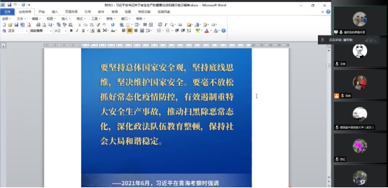 支部副书记王俊同志、组织委员潘秉锁同志、纪律委员郑君同志分别带领支部党员学习了《韦德官方网站(武汉)“清廉地大”建设实施方案》《习近平总书记关于安全生产重要论述》和“习近平总书记给中国冰雪健儿重要回信精神”等内容。